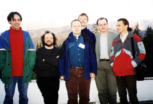 Krzysztof przez 8 miesięcy był na stażu w Computer Laboratory w Cambridge zajmując się automatyzacją dowodzenia twierdzeń matematycznych. Jarek skończył fizykę i matematykę, studiował trochę socjologię, zrobił u mnie doktorat i wyjechał najpierw zajmować się symulacjami białek do Jerozolimy na Uniwersytet Hebrajski, potem do Kyoto University a ostatnie dwa lata spędził na Cornell University zajmując się bioinformatyką.