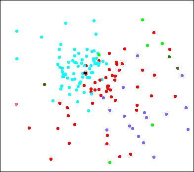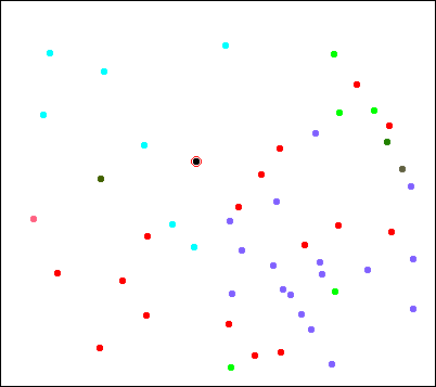 The 50 nearest neighbors with 100 Gaussian (s =1) points classified |
