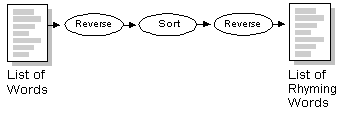 Let's look at a program, called RhymingWords(in a .java source file), that implements what's represented in the previous figure. This program uses PipedReader and PipedWriter to connect the input and output of its reverse and sort methods to create a list of rhyming words. Several classes make up this program.